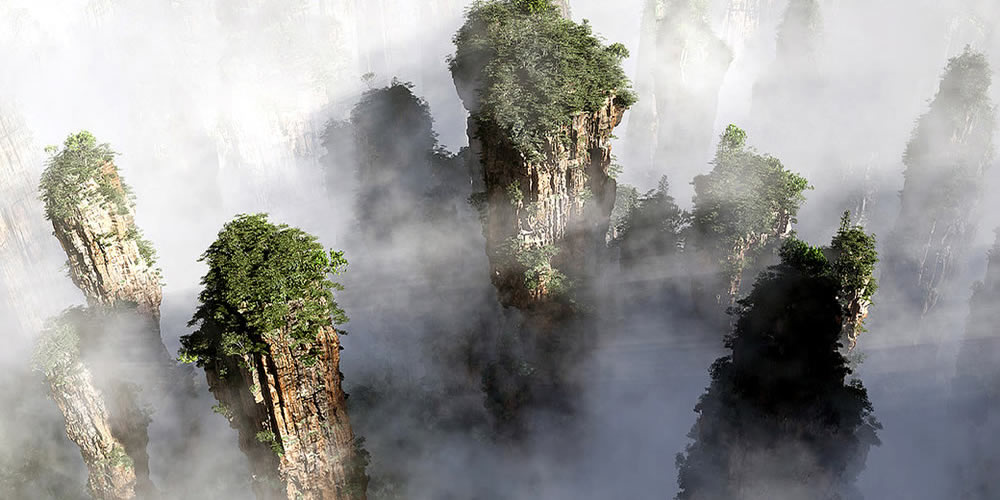 Zhangjiajie National Forest Park adalah taman national pertama di china, yang diakui pada tahun 1982. di sini ada lebih dari 3000 berbentuk pilar yang keluar dari bumi dan bisa terlihat dari taman.