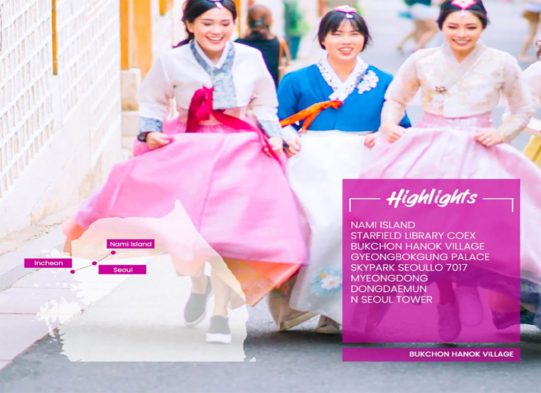 Setelah sarapan pagi, mengunjungi Gingseng National Outlet. Kemudian acara belanja di Comestic Shop. Setelah makan siang, city tour mengunjungi Gyeongbok Palace dan National Folkfore Museum. Kemudian mengunjungi Bunchon Hanok Village.Sorenya mengunjungi Skypark Seoullo 7017.Setelah makan malam, acara shopping di Myeongdong Shopping Street. (Santap pagi dan siang ).