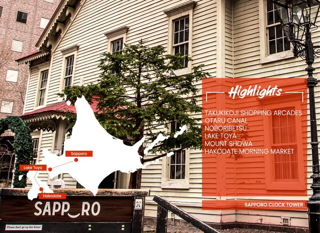 Pagi ini tiba di Chitose. City tour anda dimulai dengan photo stop di Clock Tower dan Government Building dan mengunjungi Adori Park. Setelah makan siang, acara shopping di Takukikoji Shopping Arcades.